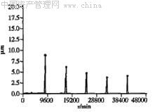 撫順石化公司石油二廠一臺(tái)轉(zhuǎn)速為8100r/min的氣壓機(jī)組白于壓縮機(jī)軸彎曲振動(dòng)逐漸升高,壓縮機(jī)的工頻振幅明顯增加(圖1)。經(jīng)過(guò)動(dòng)平衡校驗(yàn)后,同頻振動(dòng)幅值又恢復(fù)到正常水平(圖2)。