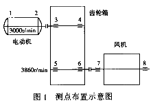 2002年12月20日,香海熱電廠1#爐高壓風(fēng)機(jī)(美國產(chǎn)海本多級離心機(jī)),在日常檢測中發(fā)現(xiàn),測點(diǎn)8(圖1)軸承水平振動比平時大出五倍,最大振動有效值7.6mm/s(圖2),已嚴(yán)重超過標(biāo)準(zhǔn)。