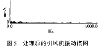 該引風(fēng)機(jī)更換了自由端軸承和齒式聯(lián)軸器后,振動(dòng)值正常(表1),頻譜見圖5。運(yùn)行狀況一直很好。